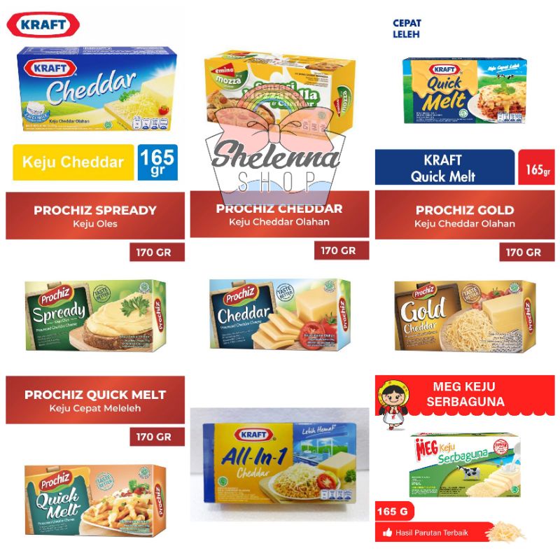 Jual Keju Cheddar Mozzarella Kraft Meg Emina Prochiz Quick Melt Indonesia Shopee Indonesia